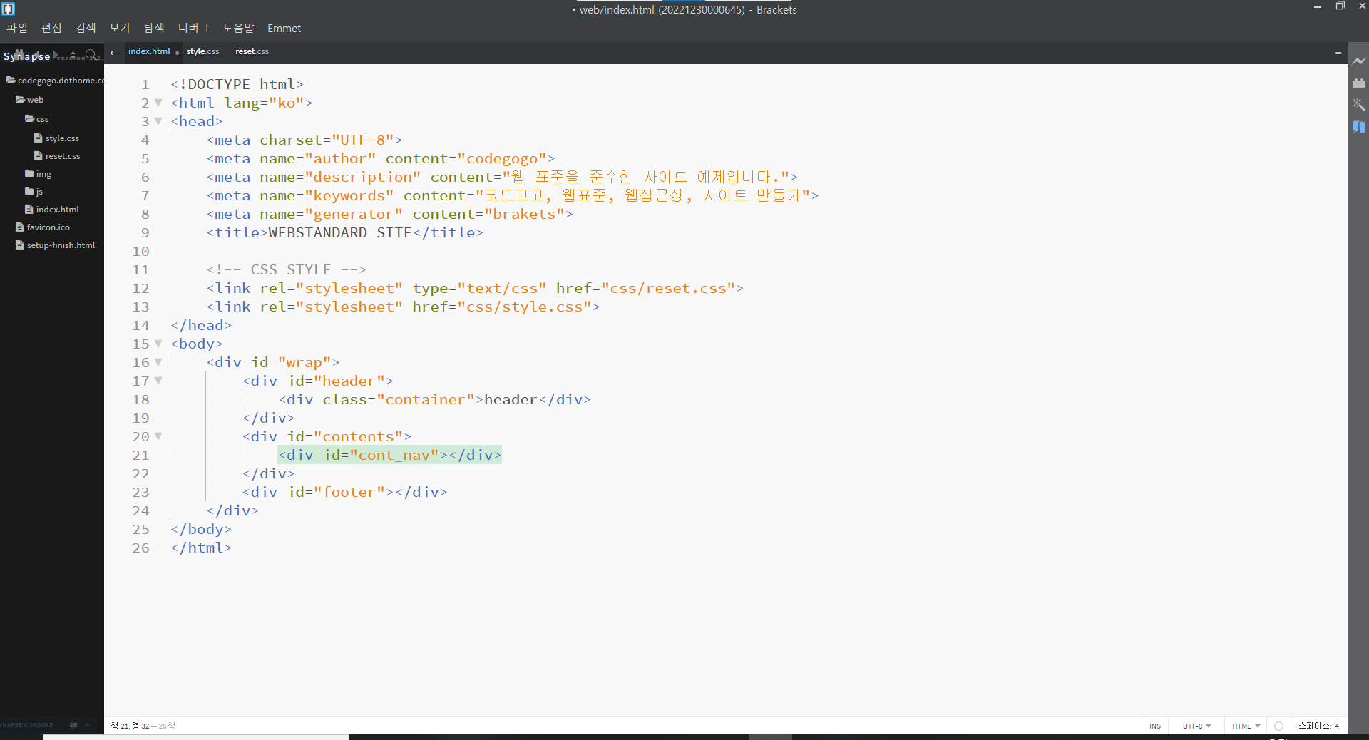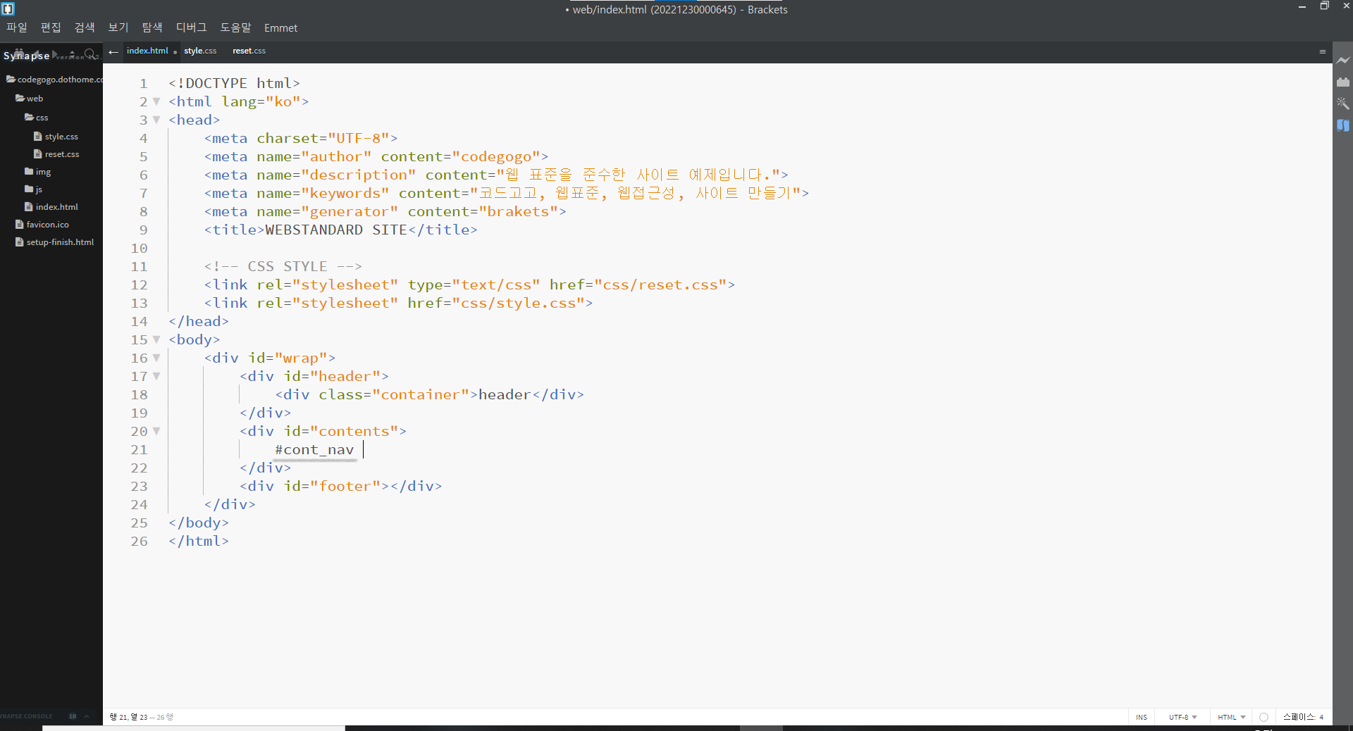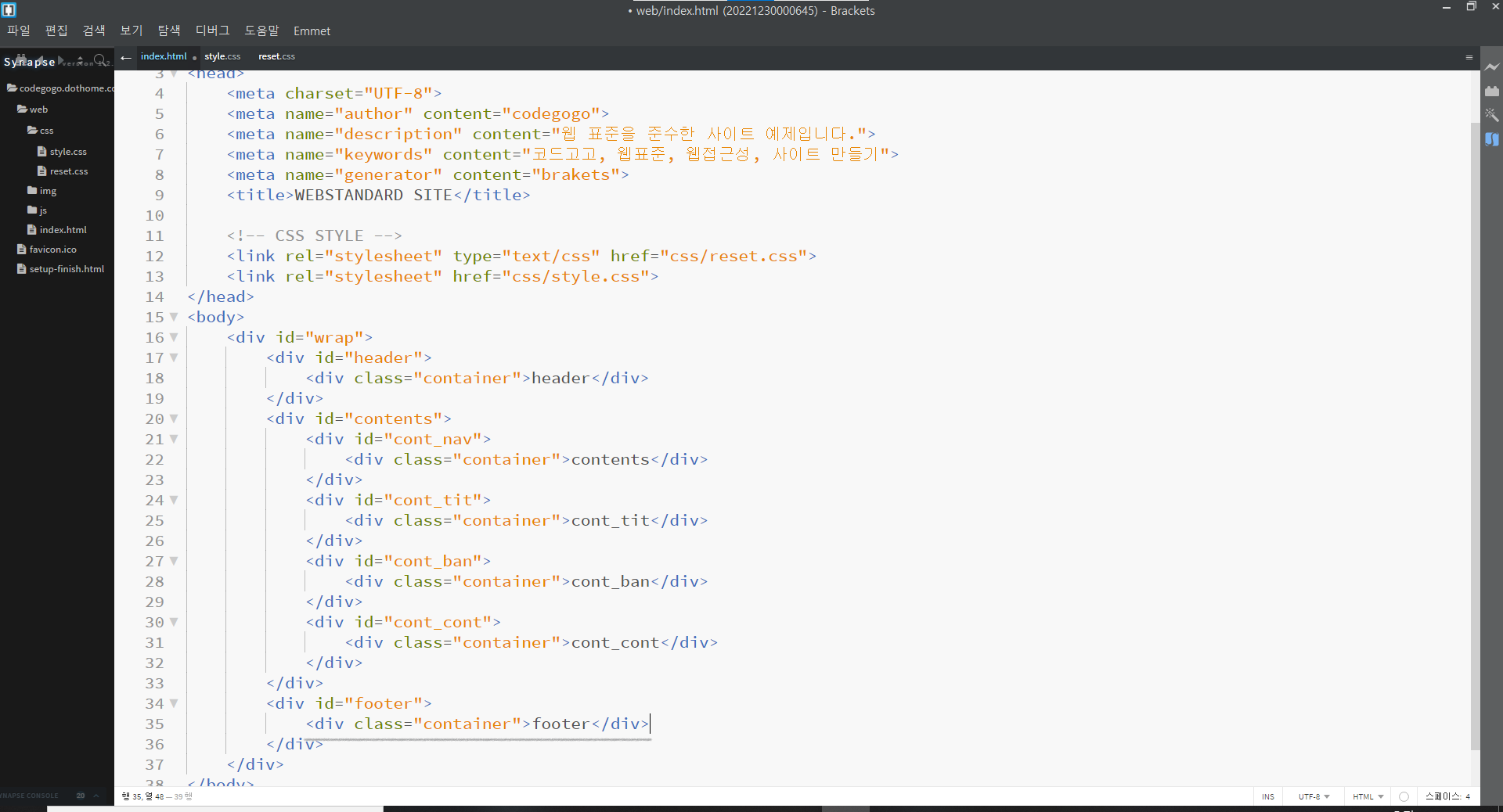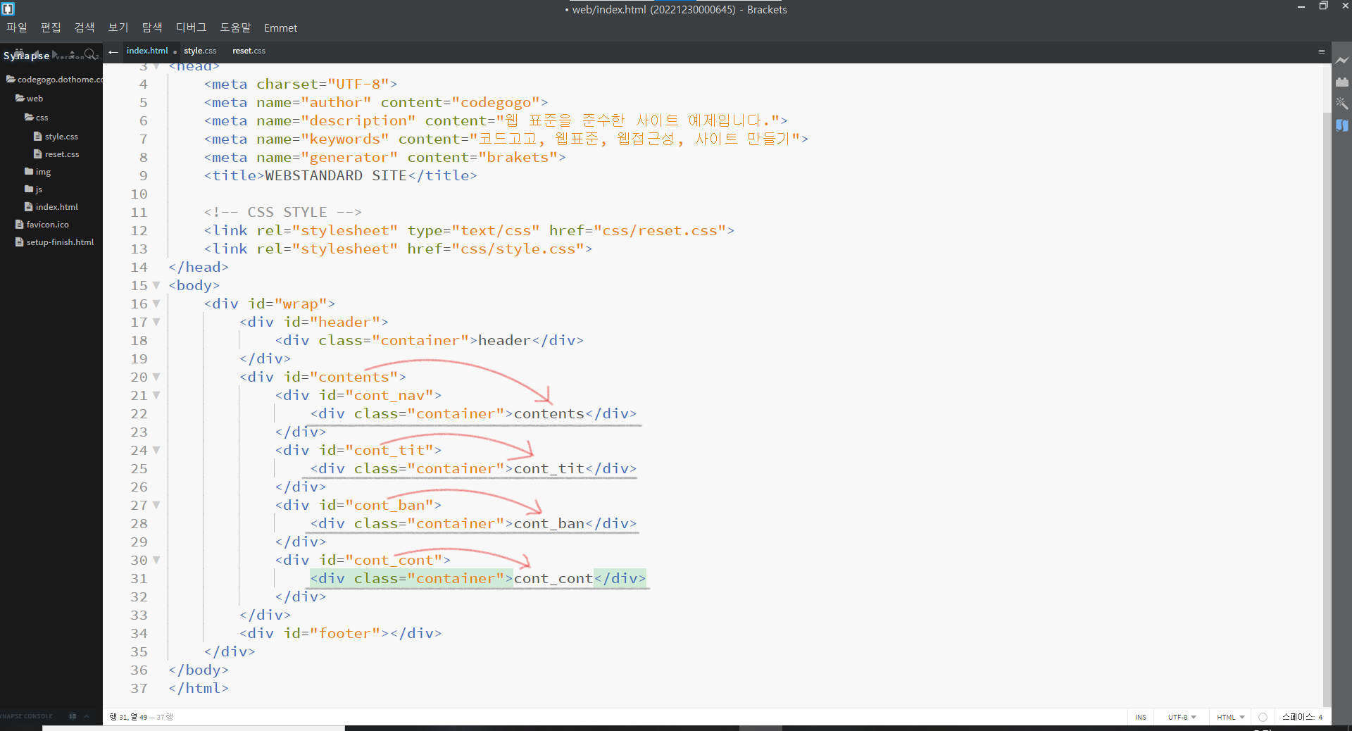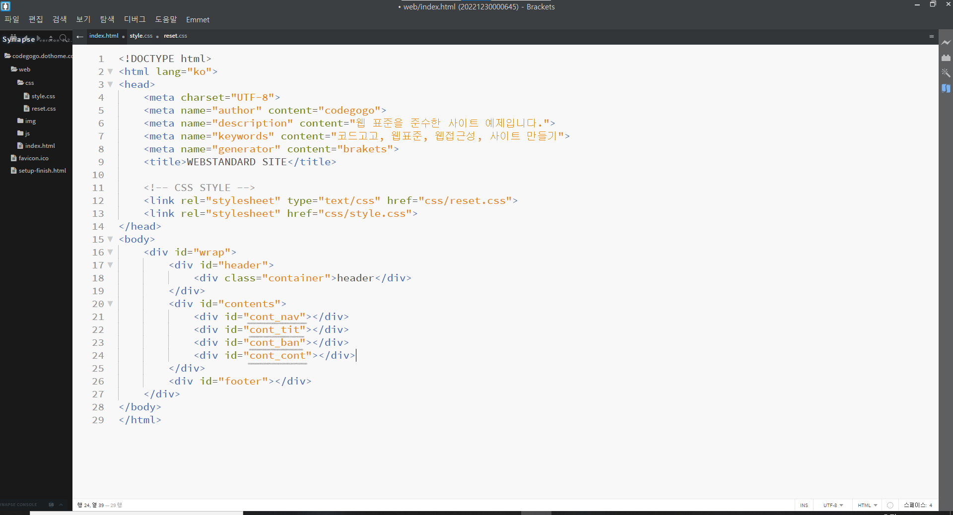 | 웹 표준 사이트 만들기 7강 (0) | 2022.12.29 |