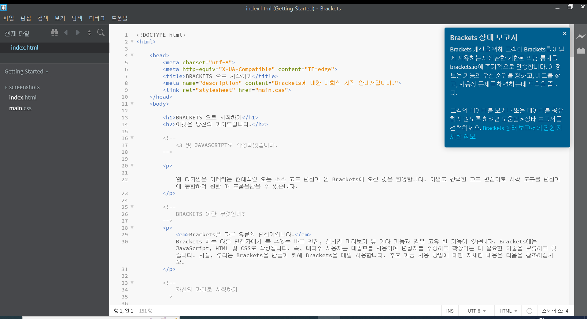 Brackets - 웹 디자인을 이해하는 현대적인 오픈소스 코드 에디터