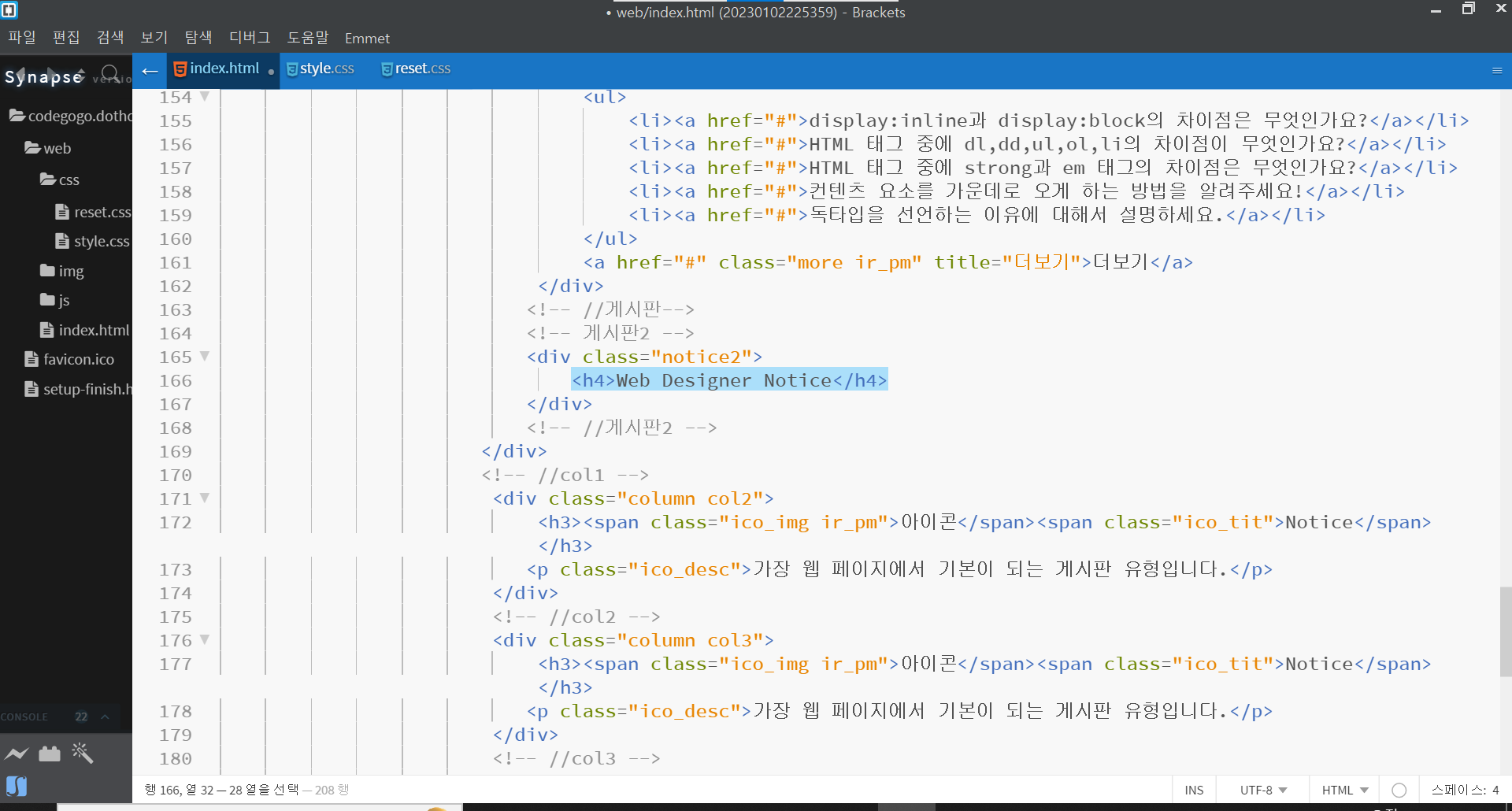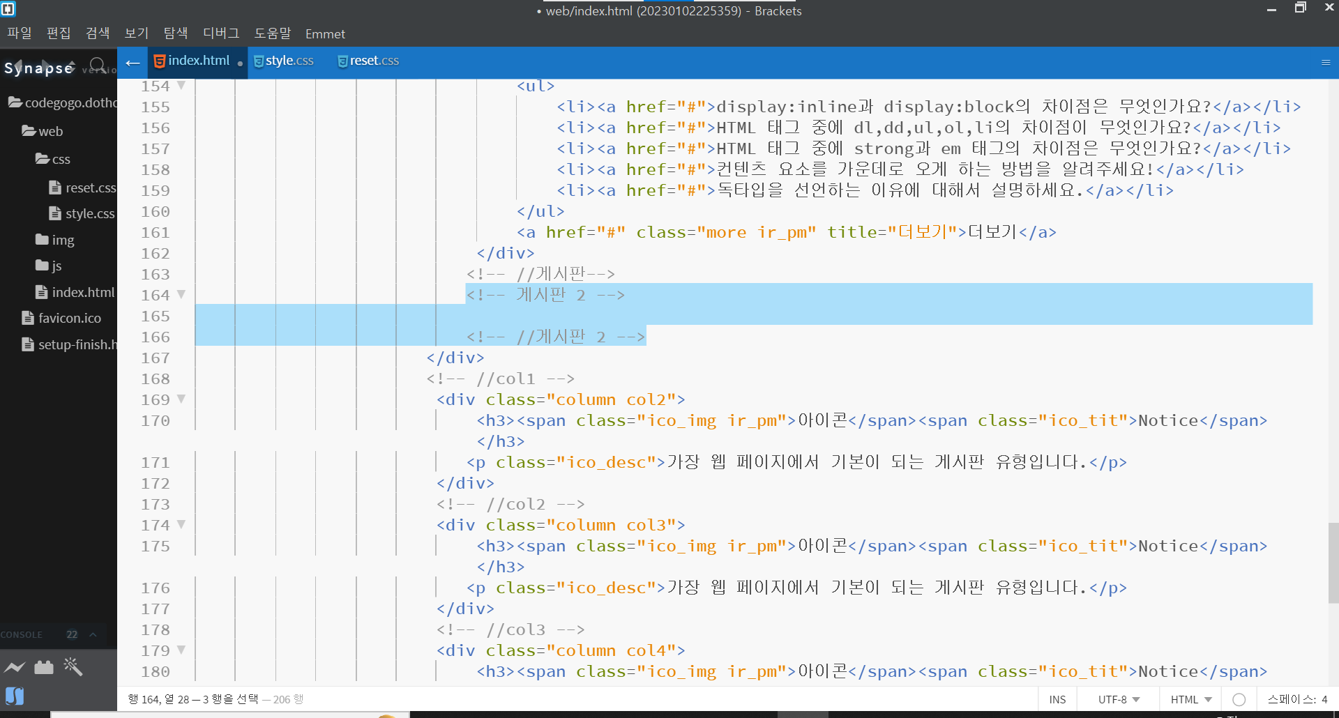 | 페이지 구조 실습 - 컨텐츠 레이아웃 (2) | 2023.01.02 |