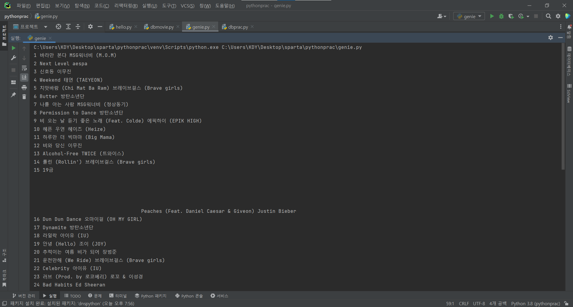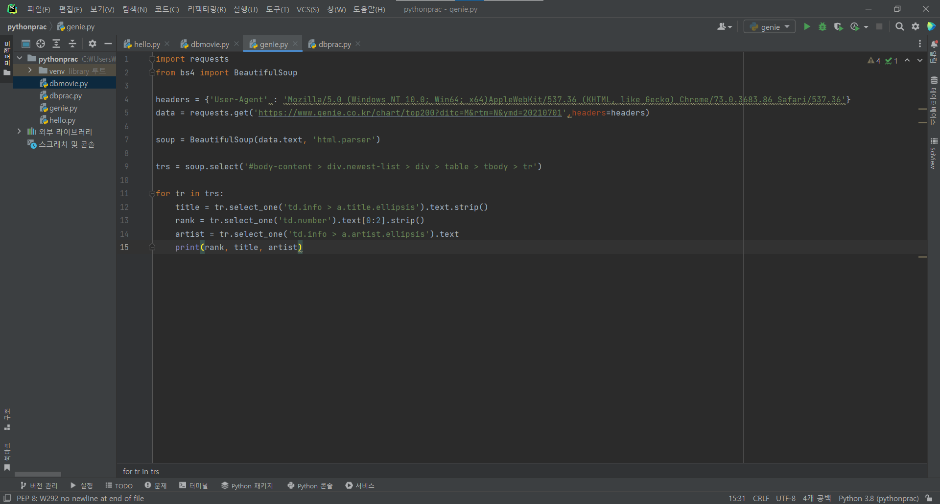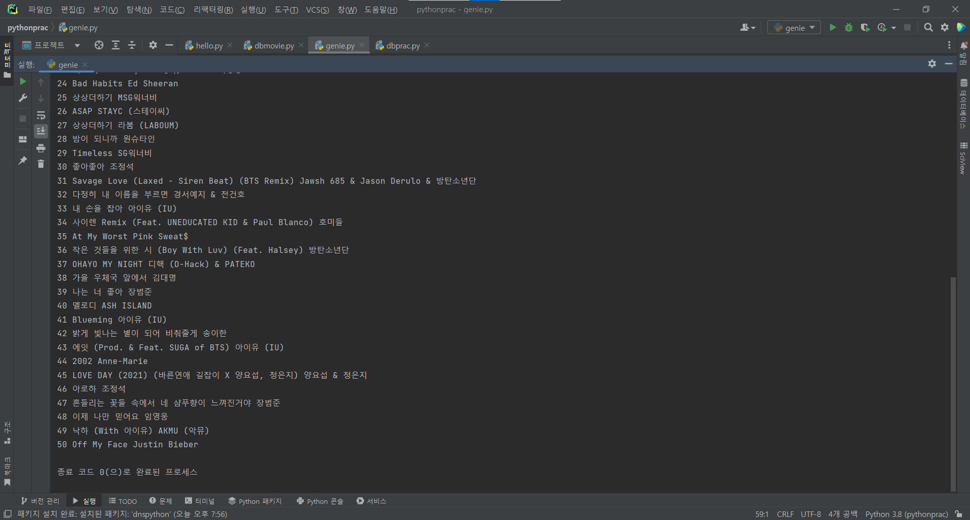 지니뮤직 사이트에서 1위~50위 출력.