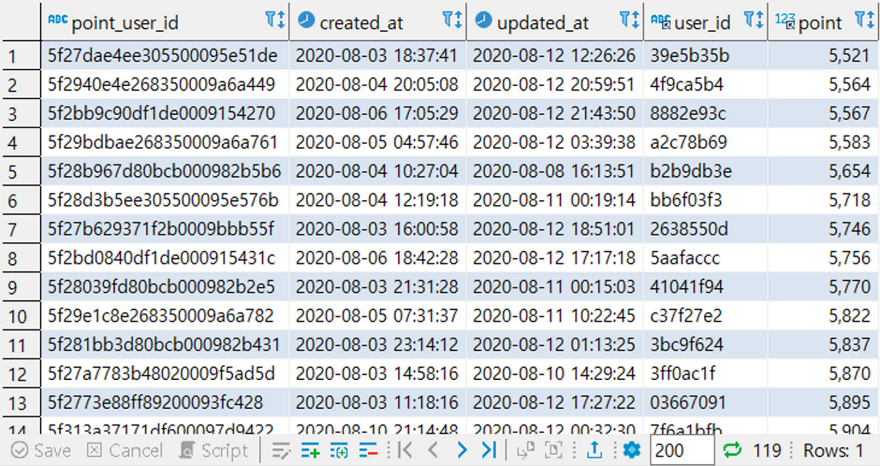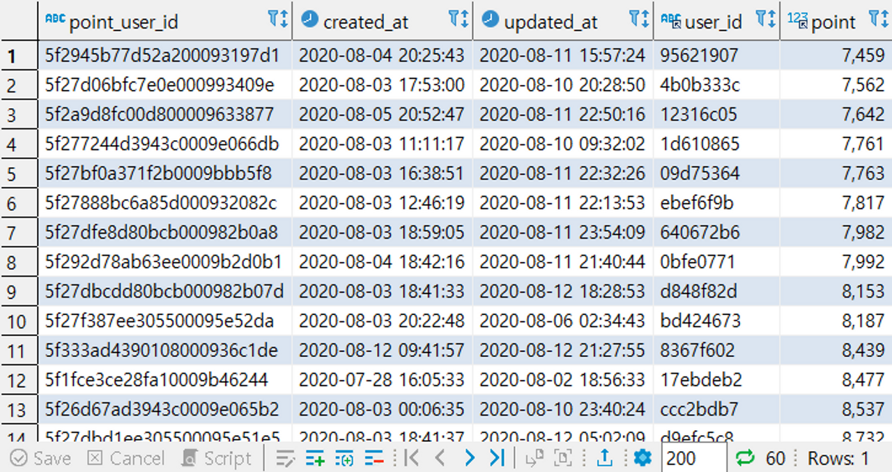 ☞예시) 전체 유저의 포인트의 평균보다 큰 유저들의 데이터 추출