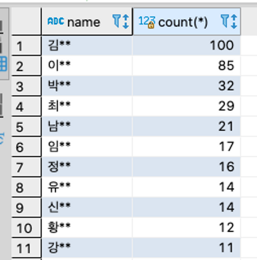 ☞예시) 스파르타 회원: 성씨별로 몇 명의 회원이 있는지